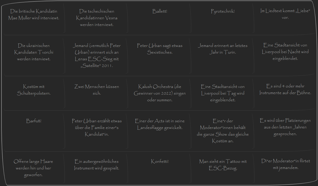 Ein Bingo mit einer zufälligen Auswahl aus 120 verschiedenen Möglichkeiten über den ESC.